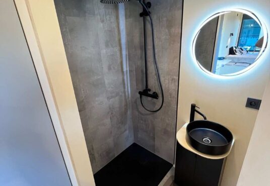 • Kompakte Küchenzeile und voll ausgestattetes Badezimmer